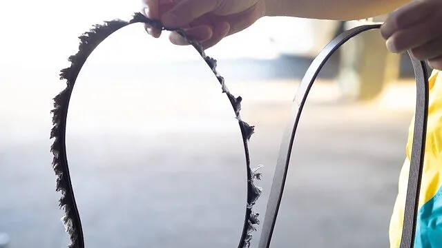 実際に新しいベルトと比べると(上記写真右)、ベルトの端がボロボロになっているのがよくわかるかと思います。