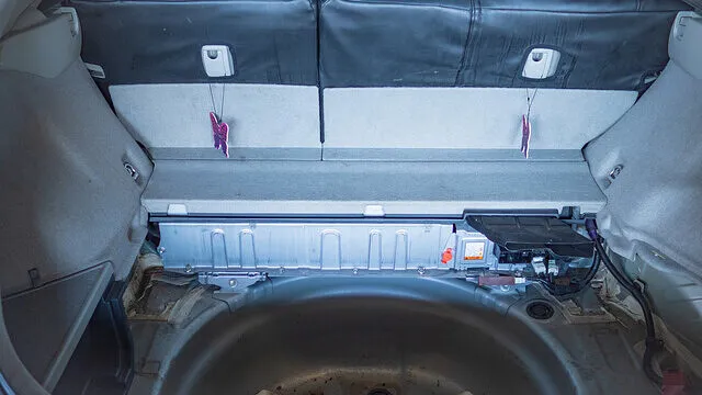 バッテリーはトランクと後部座席の中間あたりにあるので、周辺の座席や内装等を全部引っ剥がしての作業となりました。