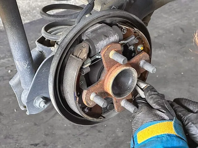 車検整備の際に、ドラムブレーキのブレーキシューが薄くなっていたため、交換を実施しました。